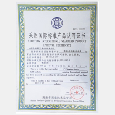 采用國(guó)際標(biāo)準(zhǔn)產(chǎn)品標(biāo)志證書